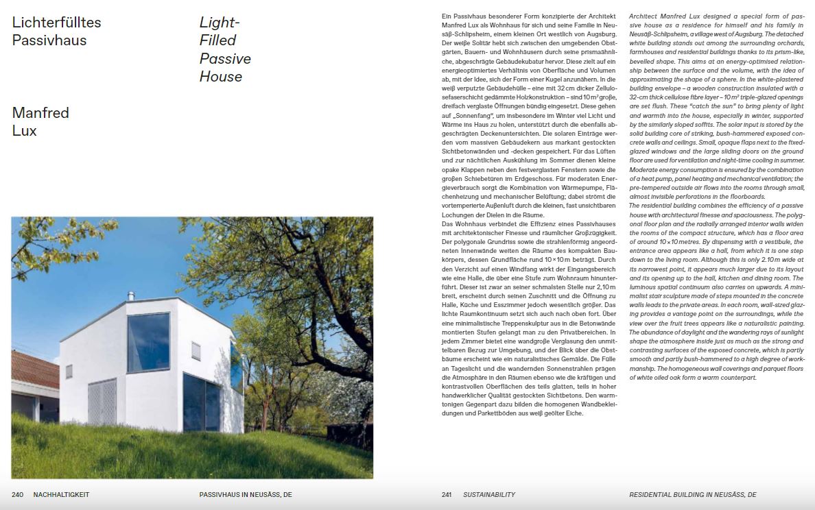 이 책에서는 평면도 구성부터 구조 상세까지 26채의 모범 단독주택이 제시되어 있습니다. 그것은 어떻게 집이 주변 환경에 스며들었는지, 어떻게 지역 건축 전통이 재해석되고 재료가 특이한 방법으로 사용되는지, 또는 어떻게 확장과 개조가 오늘날의 경제적, 생태학적 생활 요구 사항을 충족시키는 데 도움이 되는지를 보여줍니다.