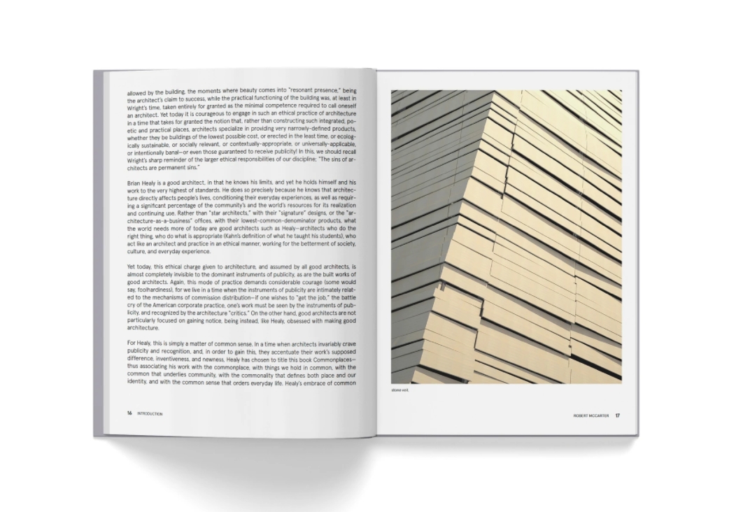 Brian Healy는 현대 미국 전통에서 일하는 건축가입니다. 즉, 그는 Louis Sullivan, Frank Lloyd Wright, Louis I. Kahn과 같은 건축가의 모범이 되는 실천의 전통에 참여하려고 노력합니다. 보편적인 "세계화"에 대한 강박적인 강조와 동시에 지역적 장소, 문화 및 정체성의 상실이 지배적인 시대에 오늘날 미국의 관행 전통에 참여하려면 상당한 용기가 필요합니다. 그러나 40여 년 전 폴 리쾨르가 말했듯이 보편적인 문명은 전 세계 어디에서나 가능하고 모든 사람이 원하지만 지역적이지 않고 특정 장소에 속하지 않는 문화는 없습니다. 그의 작품에서 Healy는 장소와 시간에 따라 정의되는 그의 원칙인 건축의 본질을 추구하기 위해 노력합니다. 즉, 미국식 건축은 평범함과 토착어에서 태어났지만 동시에 현대 전임자들의 위대한 작품에 참여했습니다. – 로버트 매카터