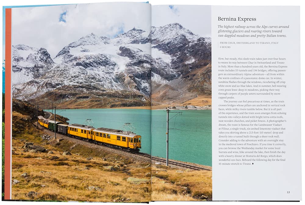 베르니나 익스프레스를 타고 알프스를 가로지르는 여행부터 콜롬보에서 스리랑카의 차 농장까지 가는 여행까지, 멋진 기차를 타고 세계를 탐험할 수 있는 무한한 가능성이 있습니다. Train Journeys는 기차 여행의 즐거움을 경험하고자 하는 사람들에게 영감과 실용적인 팁을 제공할 것입니다. 이 책은 몇 시간 동안 지속되는 짧은 여행부터 여러 날에 걸친 대륙 횡단 여행에 이르기까지 전 세계를 가로지르는 50가지 놀라운 철도 여행에 대한 설명과 세부 정보를 제공합니다.