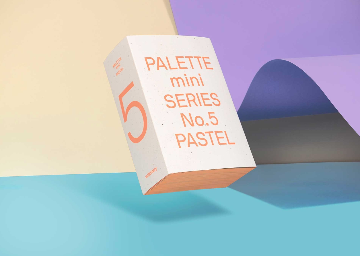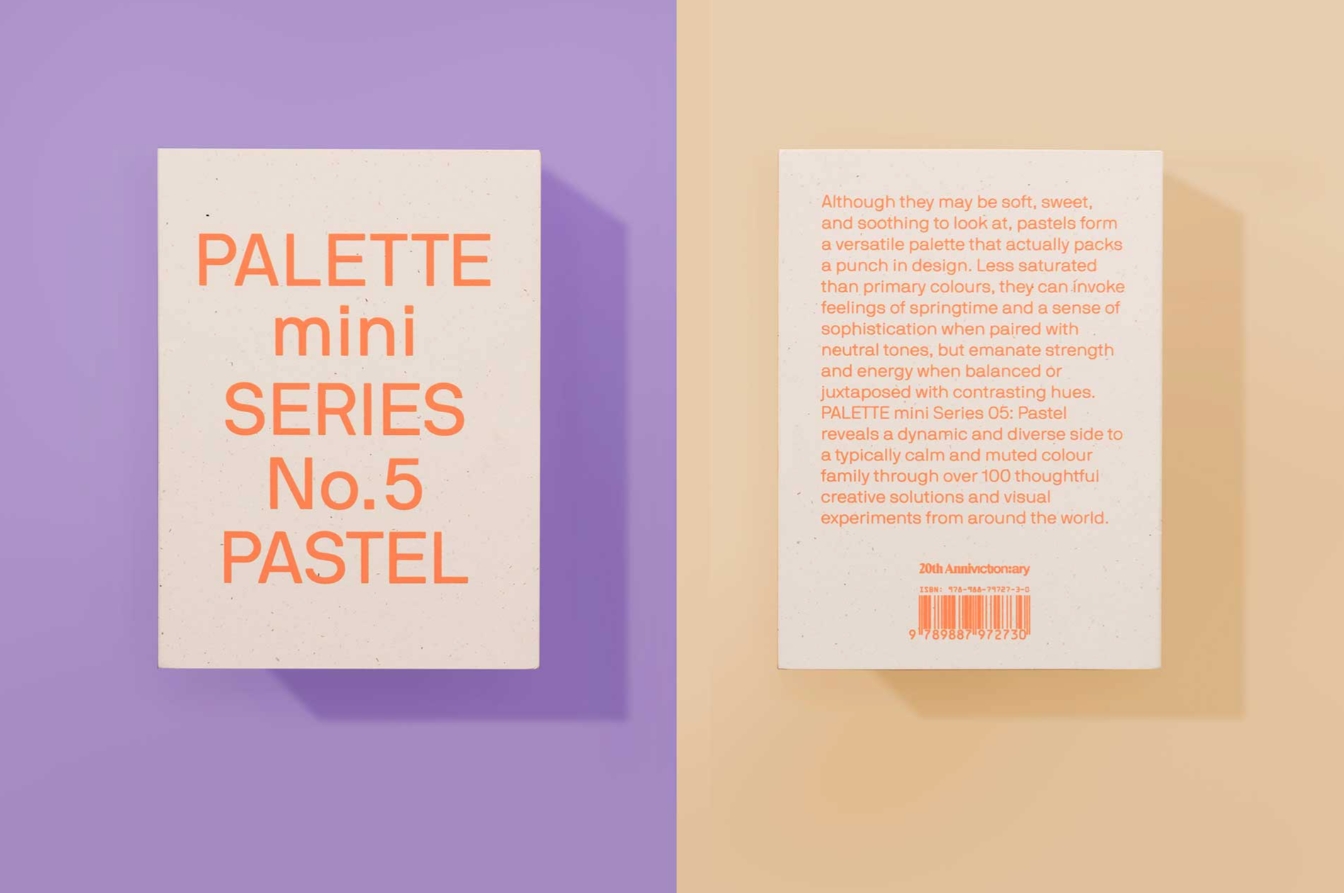 시리즈의 첫 4개 타이틀(Black & White, Multicolour, Gold & Silver, Neon)에 이어 PALETTE mini 05: Pastel은 일반적으로 부드럽고 차분한 색상 범위에서 다양한 창의적 방법에 영감을 주는 사려 깊은 디자인 솔루션과 시각적 실험을 포함합니다. 단일 색조, 팔레트로 사용하거나 대조적인 색조와 병치하여 사용할 수 있습니다.