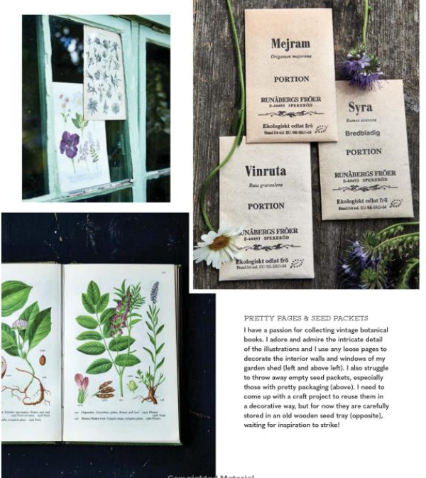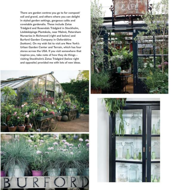 Selina begins by describing her sources of inspiration – famous gardens, nurseries and garden centres, plant catalogues and botanical prints. Armed with ideas, she moves on to Chapter Two, Decorating your Garden, which is packed with suggestions for container gardening and introducing decorative features. In the next chapter, Bringing the Outside In, she harvests flowers and foliage from the garden to provide seasonal adornment for her home. Chapter Four, Garden Rooms, Greenhouses and Sheds, taps into the current trend for garden buildings that allow you to make the most of your outdoor space. Next, in Relaxing Outdoors, Selina explains how to transform your garden into a stylish space for entertaining, with ideas on furniture, lighting and more. Finally, in Eating Outdoors, Selina offers advice on creating an inviting outdoor room for eating alfresco. The book is peppered with styling ideas and simple projects. There are also tips on choosing easy-to-grow garden plants and even growing your own produce.