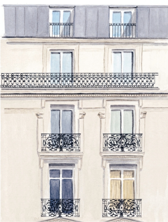 생생한 수채화와 세련된 외관의 잉크 그림은 각 건물이 유쾌한 장식 세부 사항과 함께 파리의 매력적인 초상화를 그립니다.