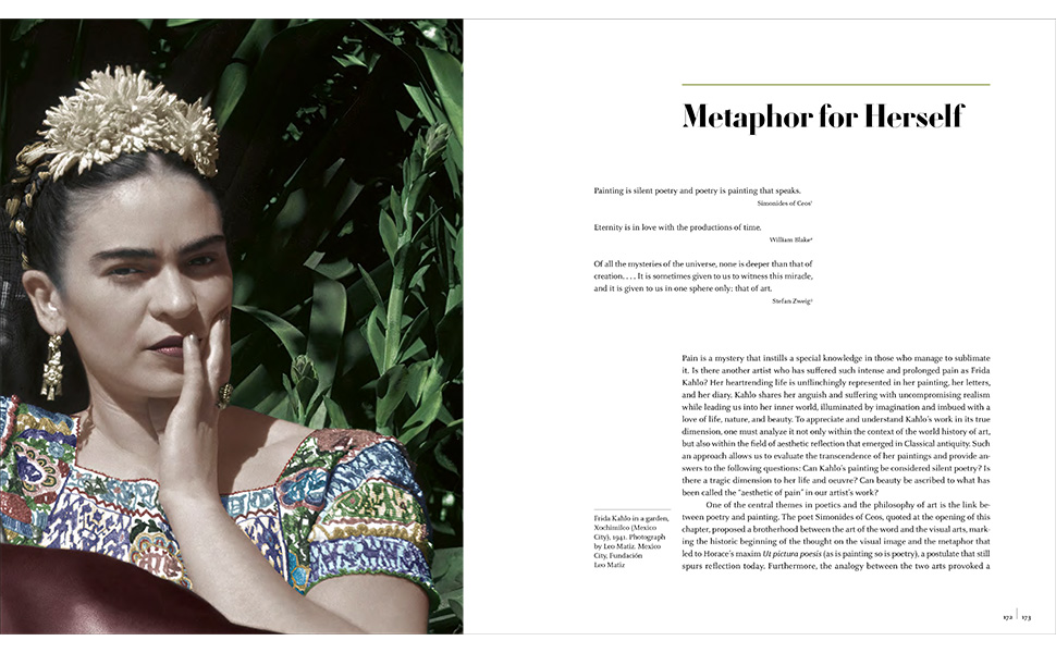 Kahlo는 금기시되는 많은 주제와 자신을 정면으로 대면한 여성 예술가로서 예술계의 지형을 바꾼 획기적인 작품을 제작했습니다. 이 페이지에서 새로운 고해상도 사진은 많은 매혹적인 세부 사항을 포함하여 그녀의 환상적인 작품을 가장 정확하게 재현합니다. 그 놀라운 충실도와 예술가의 삶과 과정에 대한 상세한 분석이 결합되어 전 세계 수많은 Kahlo 팬들의 필수 책이 되었습니다.