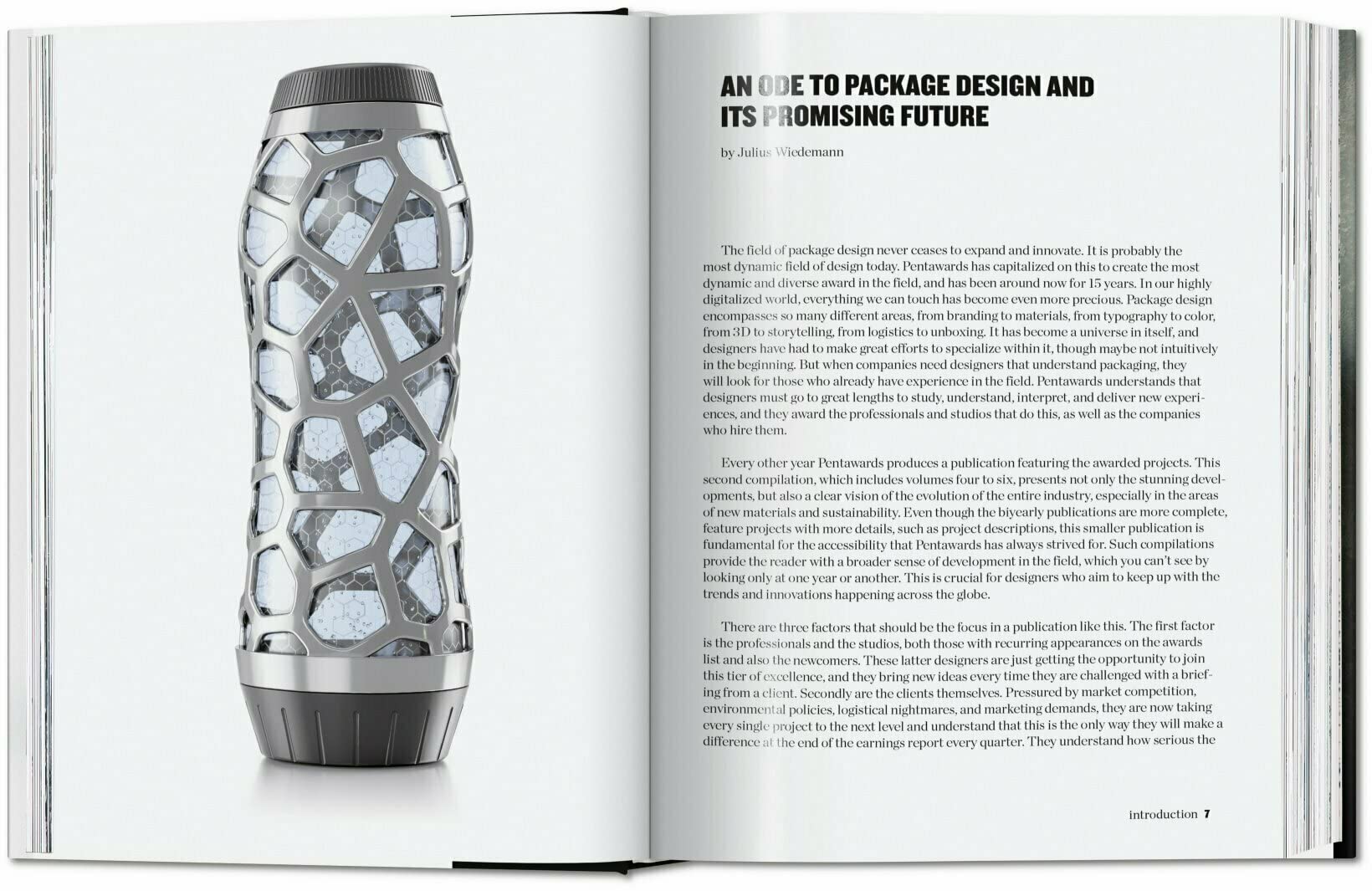 패키지 디자인 분야는 끊임없이 확장과 혁신을 거듭하여 오늘날 디자인 분야에서 가장 활기차고 경쟁이 치열하며 빠르게 발전하는 분야 중 하나입니다. 이는 소비자의 요구 사항, 계속 증가하는 마케팅 요구, 진화하는 환경 정책, 문화적 측면과 다양성의 맥락을 준수하는 관행과 같은 다양한 요소의 영향을 받습니다. 이러한 까다롭고 빠른 속도로 개발함으로써 패키지 디자인에는 디자이너, 서비스 제공업체, 재료 공급업체 및 프린터를 포함한 다양한 요소와 전문가가 포함됩니다. 그 결과, 그 자체가 하나의 우주가 되었습니다. Pentawards는 이를 활용하여 15년 동안 이 분야에서 가장 역동적이고 다양한 상을 만들어냈습니다. Pentawards는 매년 해당 지역에서 가장 영리하고 가장 다양한 디자인을 찾아 품질에 대한 글로벌 벤치마크를 설정합니다. 패키지 디자인 북 – 2권에서는 포장을 만화경 예술 형식으로 기념한 지난 10년간의 우승자를 소개합니다. 이는 새롭고 예상치 못한 발전뿐만 아니라 특히 신소재와 지속 가능성 분야에서 전체 산업의 진화에 대한 명확한 비전을 보여줍니다.