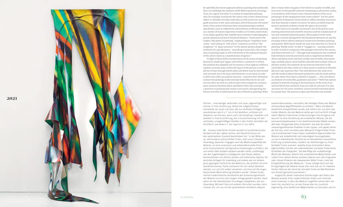 독일 예술가 Katharina Grosse(1961년 출생)는 건축물과 자연 환경에 반응하는 대규모 현장 회화로 국제적으로 유명합니다. 지금까지 그녀의 스튜디오 기반 그림에는 관심이 덜 쏠렸습니다. 이 출판물은 1980년대 후반 그녀의 초기 그림부터 가장 최근 그림까지 Grosse의 스튜디오 규모 작품에 대한 최초의 심층 탐구를 제공하여 이러한 감독을 바로잡습니다. 이 캔버스의 강력한 물리적 존재와 그것이 Grosse의 색상 및 페인트 실험에서 수행한 중심 역할을 조사한 카탈로그에서는 캔버스의 물리적 및 광학적 특성, 미적 잠재력, 독립성 및 동작 생성 능력을 자세히 조사합니다.