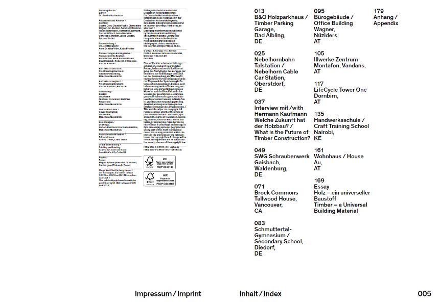 생태학적, 내구성 및 기후 친화적: Hermann Kaufmann과 HK Architekten의 건물은 다양한 측면에서 표준을 설정했습니다. 이 논문은 HK Architekten의 미래지향적 목재 건물 10채를 문서화하고 있으며, 침엽수와 견목이 다양한 건물 유형에서 건축 자재로 어떻게 사용되는지 보여주고 그로 인한 이점을 나타냅니다. SWG 나사 공장의 생산 홀, 알프스의 Nebelhornbahn(케이블카) 계곡 역 또는 Montafon의illwerke vkw의 대규모 관리 건물과 같은 프로젝트의 이미지, 청사진 및 세부 도면은 완성된 건물을 문서화합니다. 프로젝트 설명에는 구조적 정보도 포함되어 있으며 계획 및 건설 프로세스에 대한 통찰력을 제공합니다.