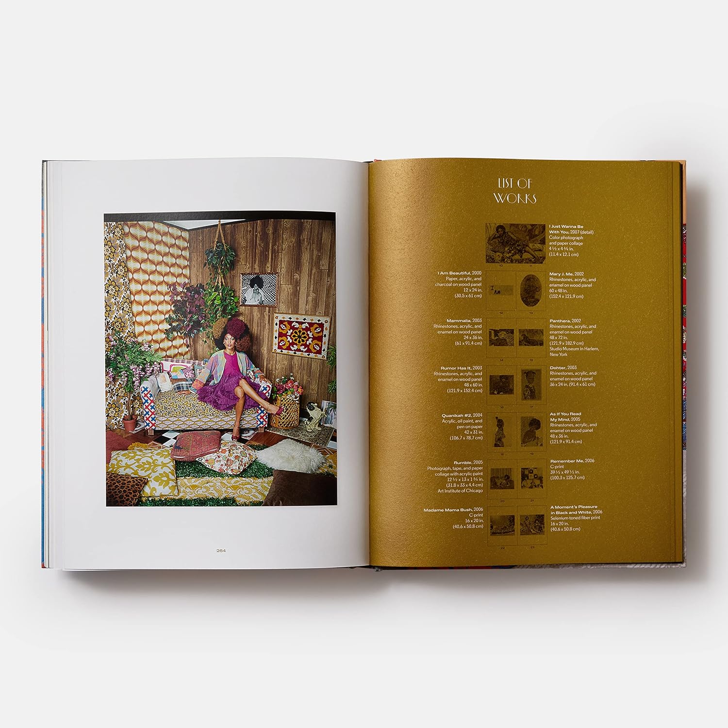 19세기 회화 전통과 대중문화의 영향이 섞인 그녀의 작품은, 자기 이미지, 젠더, 인종, 아름다움, 성, 그리고 셀럽 문화에 대한 복합적이고 강력한 시각을 드러냅니다. 이 책은 Mickalene Thomas와의 긴밀한 협업으로 제작되었으며, 다음 저자들이 참여했습니다: