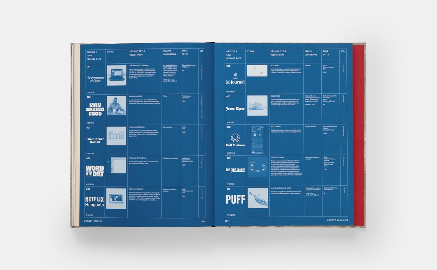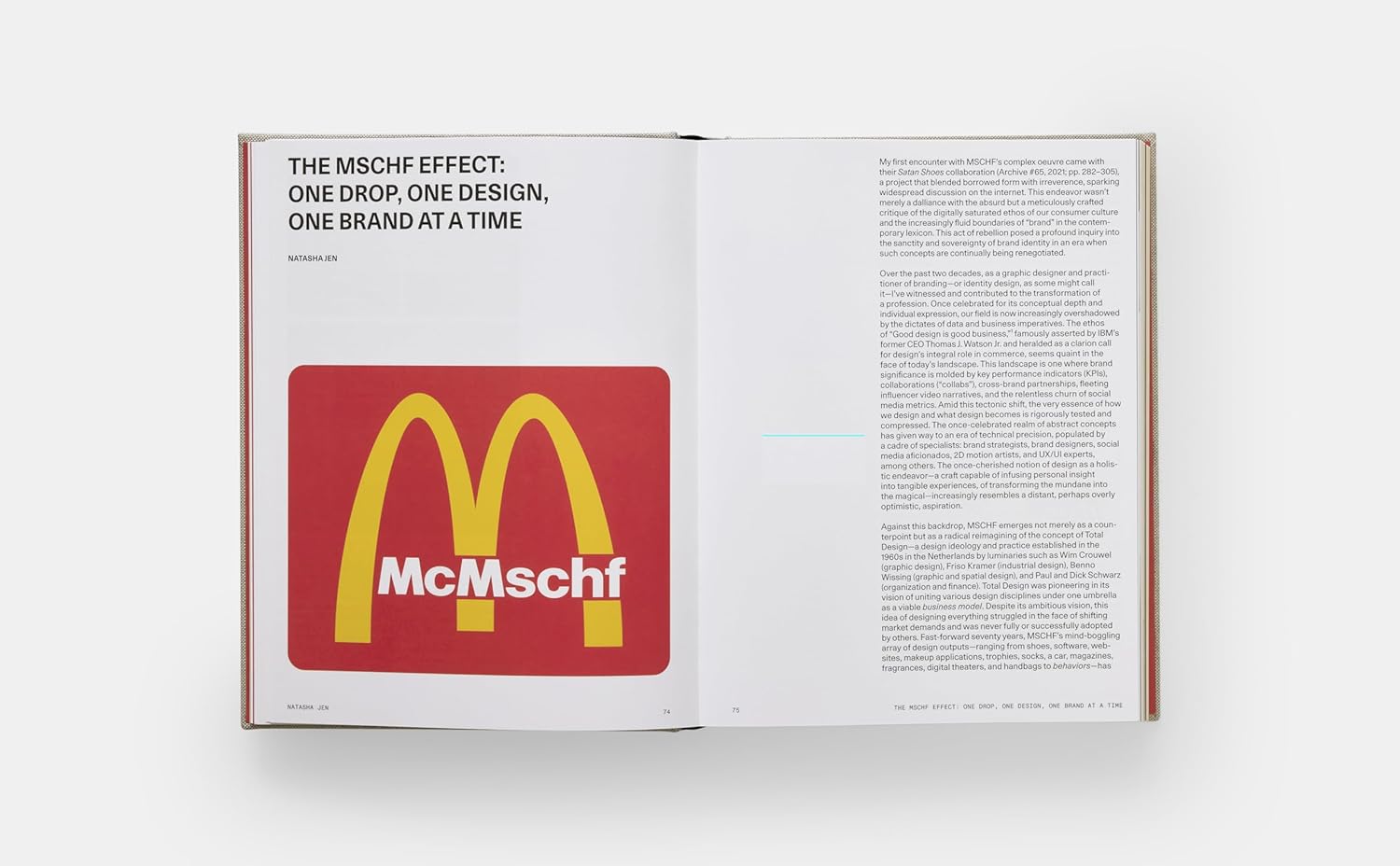 이 책은 브루클린 기반의 아트 콜렉티브 MSCHF의 작품과 활동을 집대성한 공식 서베이집입니다. MSCHF는 광고, 유머, 사회적 논란, 소비문화 비판 등을 결합한 실험적이고 도발적인 프로젝트로 유명합니다. 이 책은 그들이 지난 9년간 전개한 주요 프로젝트들을 체계적으로 정리합니다. 책에는 “Big Red Boot”(만화처럼 과장된 큰 고무부츠), “Jesus Shoes”(성수로 채운 스니커즈), “ATM Leaderboard”(사용자의 은행 잔고를 기준으로 ATM 앞에서 순위 매김), “Severed Spots”(유명 예술가의 프린트에서 일부를 잘라낸 뒤 별도 판매) 등 MSCHF 특유의 유머와 사회풍자를 담은 주요 프로젝트들이 상세히 수록되어 있습니다. 또한, 총 12개의 프로젝트 사례 연구(case studies)에 더해 6개의 주제별 에세이와 지금까지 MSCHF가 발표한 모든 작품을 아카이브 형식으로 수록되었고, 그들의 창작 과정, 개념 설계, 실행, 반응까지 포함된 “메이킹 다큐먼터리” 형태로 집필되었습니다. 시각적으로도 풍부한 책으로, 400장이 넘는 이미지(사진, 드로잉, 스크린샷 등)가 삽입되어 있어 MSCHF의 시각 언어와 실행의 스펙트럼을 생생하게 보여줍니다.