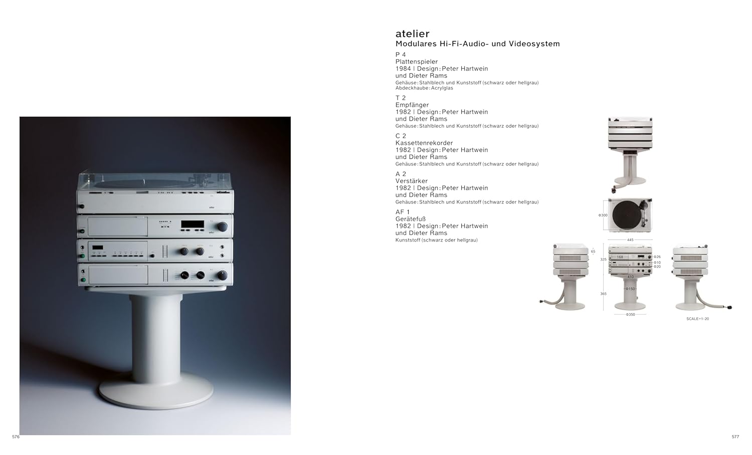 브라운 스테레오, 면도기, 가구 시스템 등 다양한 제품 사례 수록.