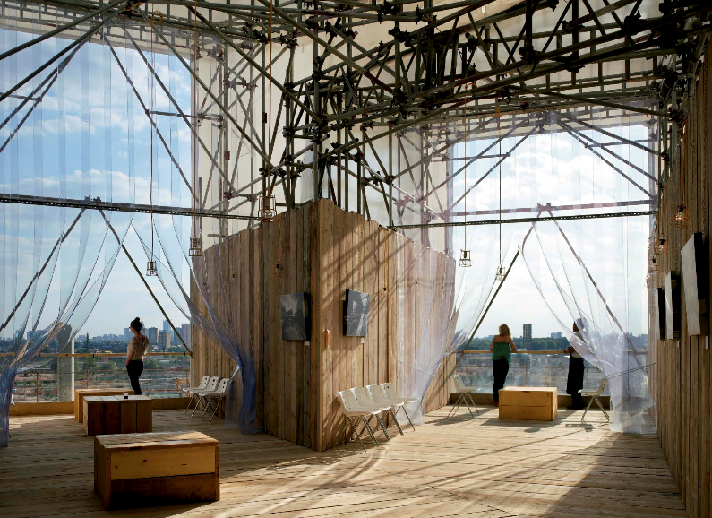 The book includes an outstanding selection of temporary projects such as the Studio East Dining , a restaurant set up for three weeks on the occasion of the 2010 Olympic Games, or The Filling Station , a remodeling of a disused gas station in King's Cross.