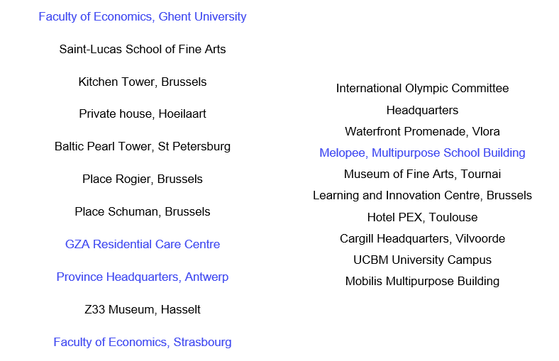 The office Xaveer De Geyter Architects has won several international competitions, as well as numerous awards throughout its trajectory, including the Flemish Culture Award for Architecture in 2014, the Mies van der Rohe award in 2003 and the Charles Wilford Prize in the years 1993 and 1992.