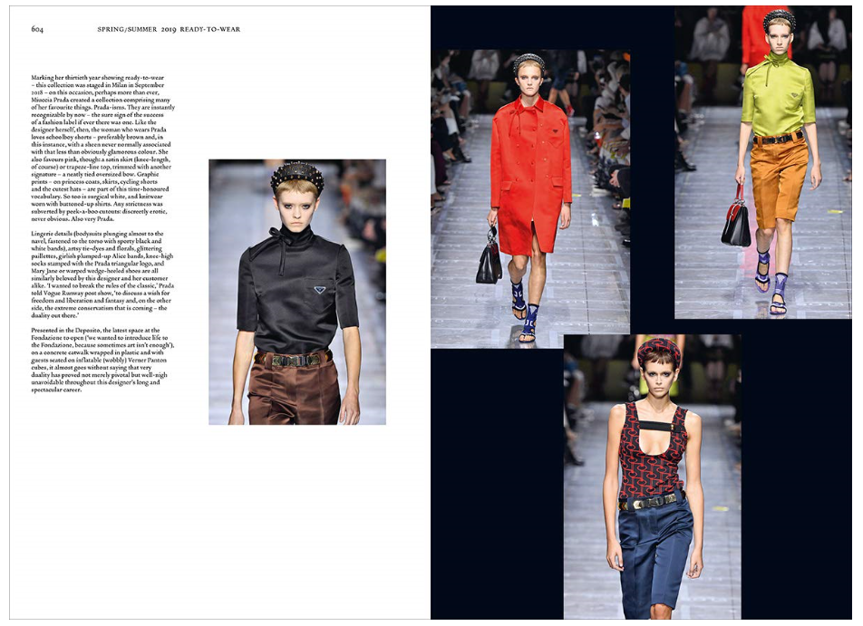 This definitive publication opens with a concise history of the house, followed by a brief biographical profile of Miuccia Prada, before exploring the collections themselves, organized chronologically. Each collection is introduced by a short text unveiling its influences and highlights, and illustrated with carefully curated catwalk images that showcase hundreds of spectacular clothes, details, accessories, beauty looks and set designs and, of course, the top fashion models who wore them on the runway, from Naomi Campbell and Gisele to Kate Moss and Kaia Gerber. A rich reference section, including an extensive index, concludes the book.