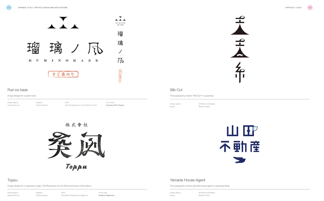 1. This book features Japanese style typeface works from design masters, such as Ryuta Ishikawa, Takahashi Yoshiharu, Toshiyasu Nanbu and Shinnoske Sugisaki. Each work stringently selected has a detailed description from the designer revealing the design concept and creating process.