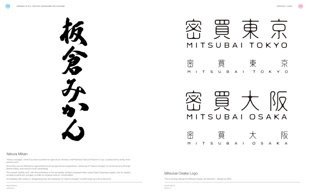 2. Different design and applications of Japanese style typeface are systematically divided into four parts: corporate image (Logo, promotion, vision identity system), product packaging, poster and book.