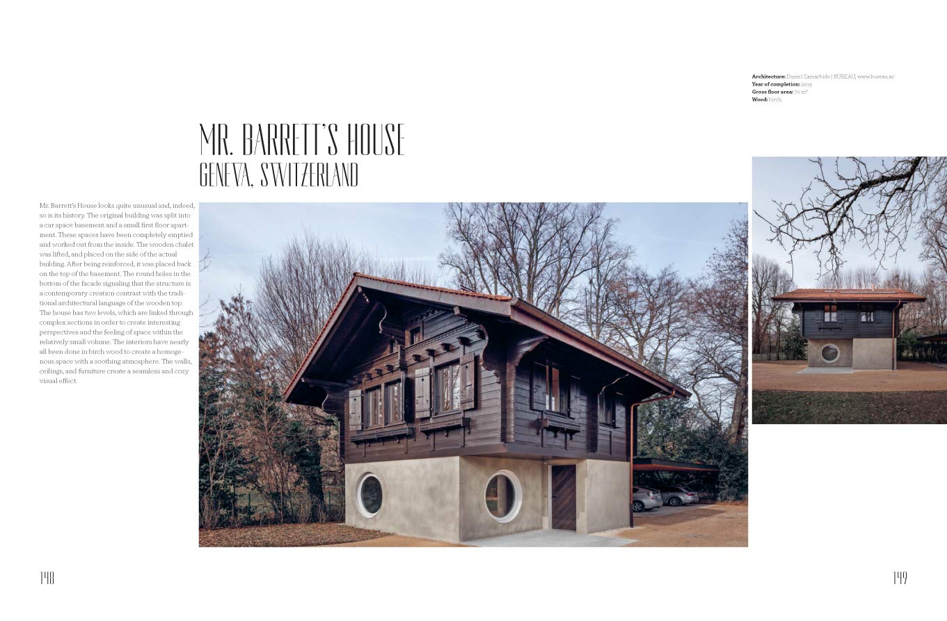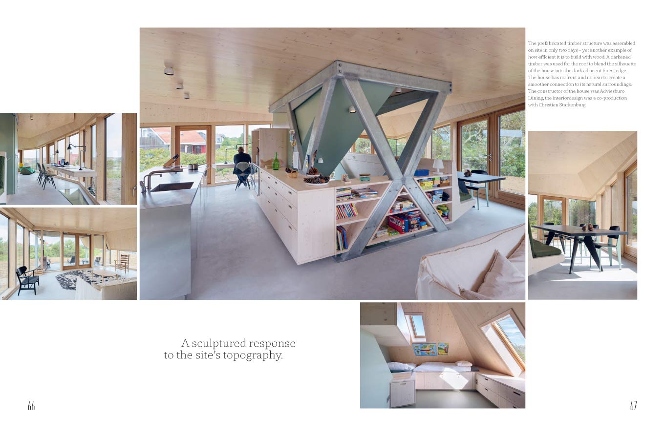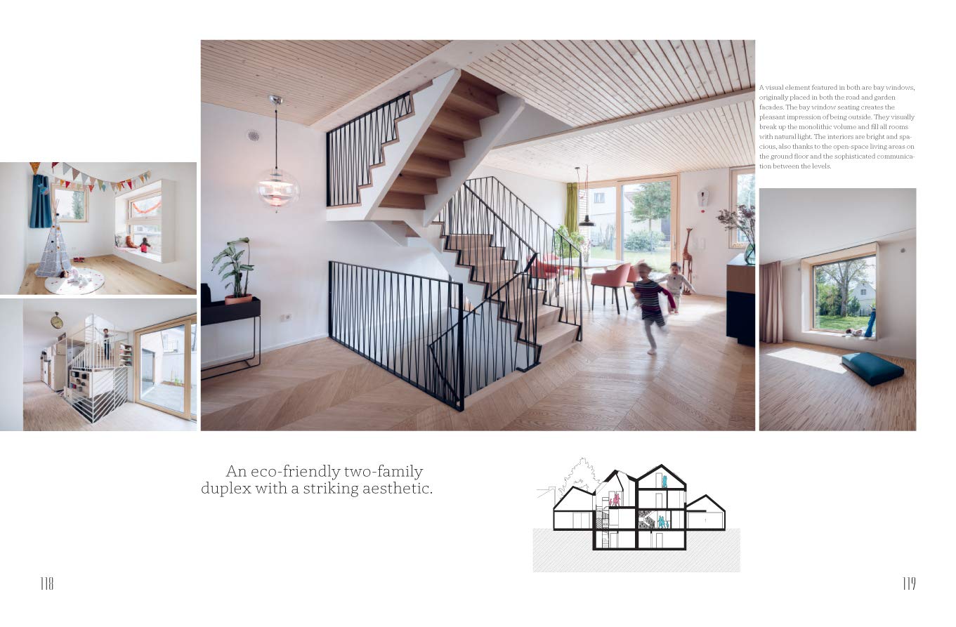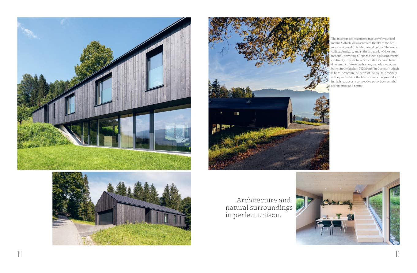 미래 및 트렌드 연구원인 Matthias Horx가 "Wood is Style"이라고 요약한 것처럼 wood는 상당한 이미지 변화를 겪고 있습니다. 전통적이고 소박한 구석에서 벗어나 첨단 건축자재의 정상을 향해 나아갔습니다. 혁신적인 목재 건축 기술은 잘 알려진 생태학적 측면과 건축 생물학적인 측면뿐만 아니라 설계의 자유를 크게 보장하고, 매우 정밀하며, 동시에 매우 대담한 건축에도 보온성과 포근함을 제공합니다. 금속, 유리, 벽돌 또는 노출 콘크리트와 같은 다른 재료와 조합하거나 대조적으로 목재를 사용하는 것은 건축가와 디자이너가 디자인을 위해 점점 더 많이 선택하는 옵션입니다. 설계자들의 실험 의지는 목조 주택과 내부 색채 구성에서도 뚜렷하게 드러납니다. 본 출판물은 미국과 캐나다를 포함한 전 세계의 주거용 건물에 대한 독특한 개요를 제공하며 건축가와 인테리어 디자이너, 건축업자들에게 현대 목재 건축의 다양성을 소개합니다.