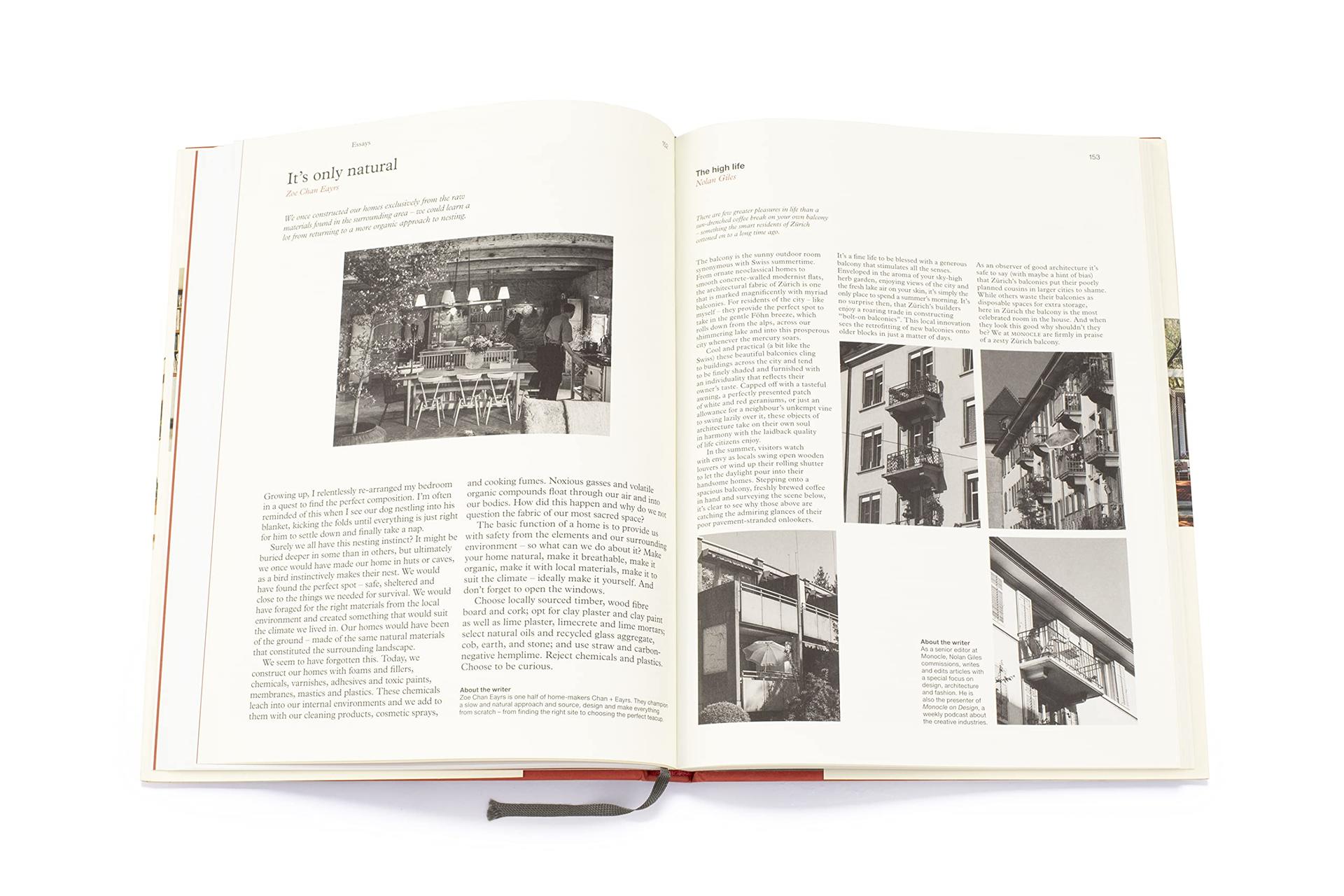 Monocle은 도시의 은신처, 현대적인 해변 거주지 또는 숲 속의 여름 거주지를 집으로 만드는 모든 것을 항상 기념해 왔습니다. Monocle 팀은 이 모든 것을 한 권에 모아 개별 주택, 오래된 주택 프로젝트와 새로운 주택 드로젝트, 자가 건축업자의 커뮤니티, 심지어 단순한 건축 철학이 많은 사람들의 삶의 질을 창조해낸 지역 전체도 살펴봅니다.